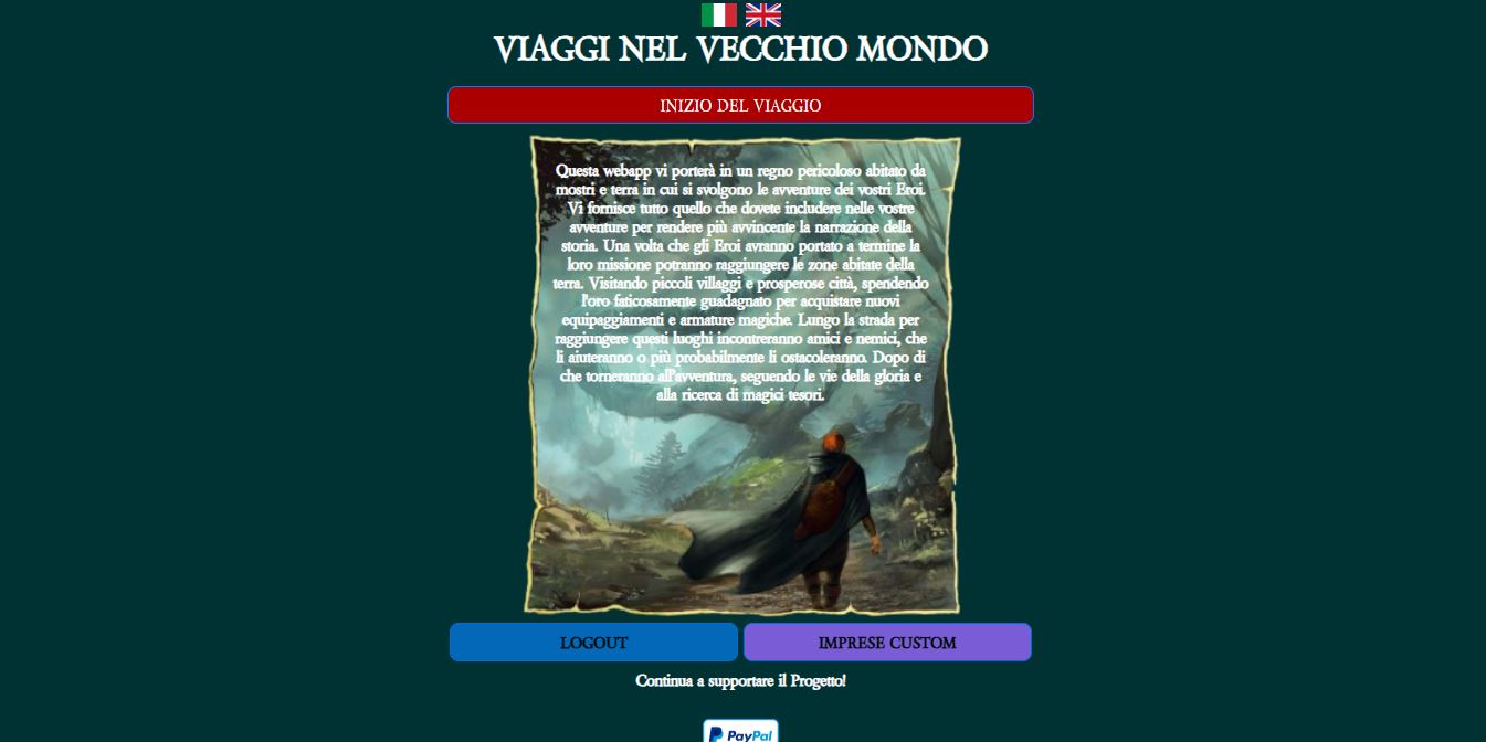 Esta aplicación web os llevará a un reino peligroso habitado por monstruos y tierra en la que se desarrollan las aventuras de vuestros Héroes. Os proporciona todo lo que debéis incluir en vuestras aventuras para hacer más emocionante la narración de la historia. Una vez que los Héroes hayan llevado a cabo su misión podrán alcanzar las zonas habitadas de la tierra. Visitando pequeños pueblos y prósperas ciudades, gastando el oro duramente ganado para comprar nuevos equipamientos y armaduras mágicas. A lo largo del camino para alcanzar estos lugares encontrarán amigos y enemigos, que les ayudarán o más probablemente les obstaculizarán. Después de eso volverán a la aventura, siguiendo los caminos de la gloria y en busca de mágicos tesoros.