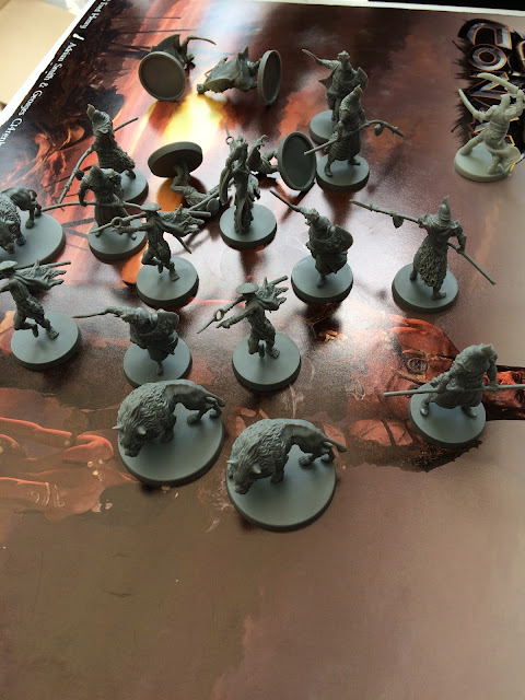 Creo que el principal problema son los héroes. Ese plástico blanco no les hace ningún favor. Ya comentaron algo. Habrá que imprimar las minis para que luzcan como dios manda.