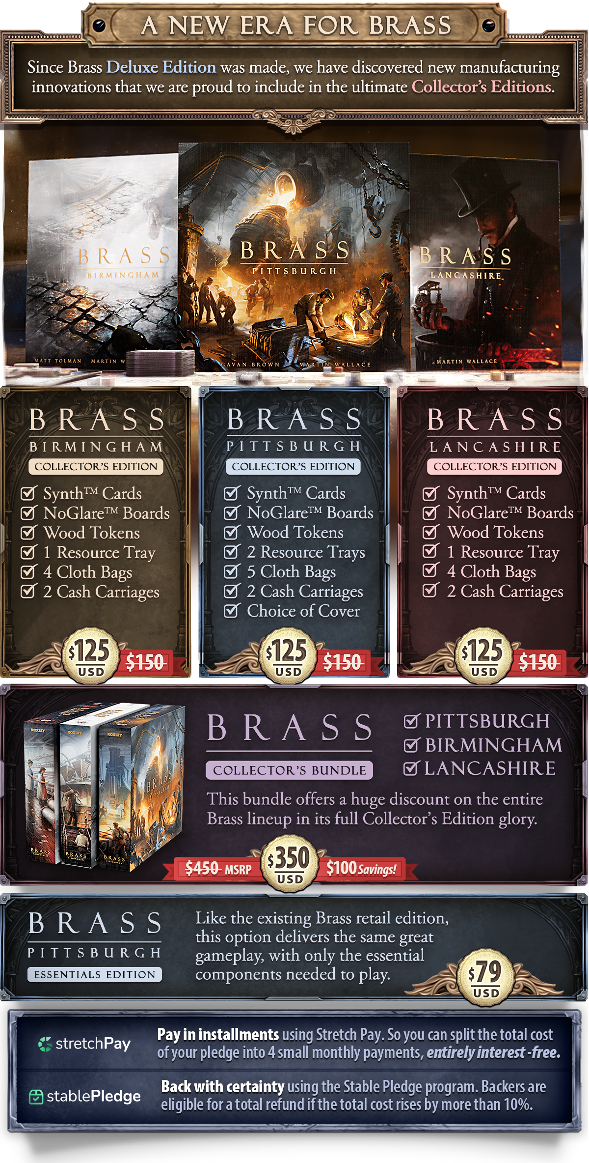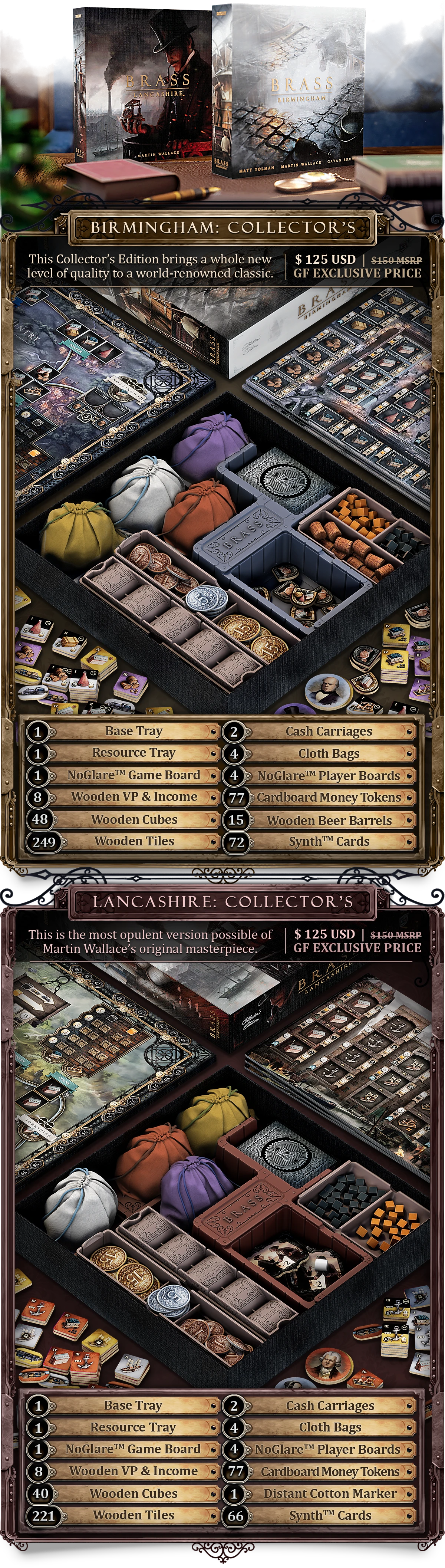 En la anterior campaña del Brass, por ese mismo precio conseguías el Lancashire y el Birmingham con las Iron CLays. En esta campaña, las Iron Clays van a parte. 120€ por un juego con monedas de carton