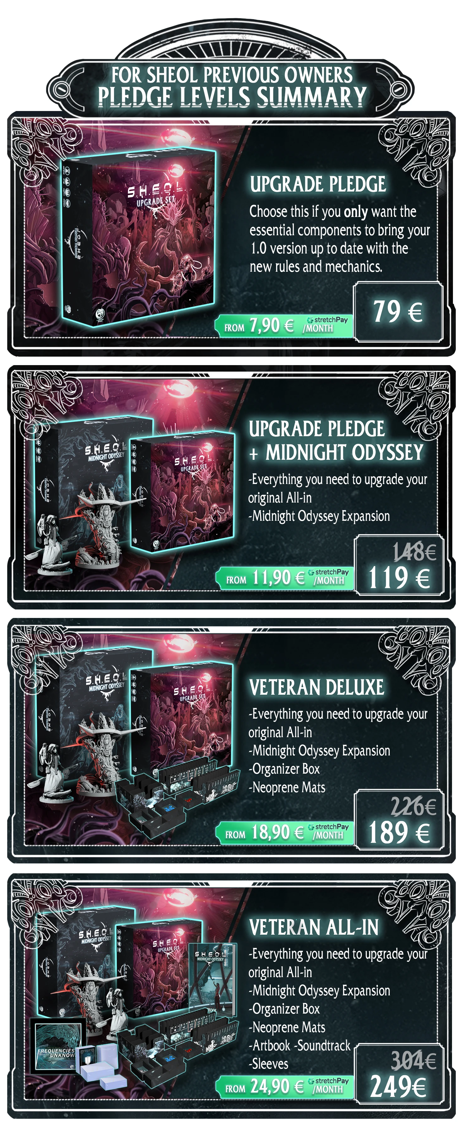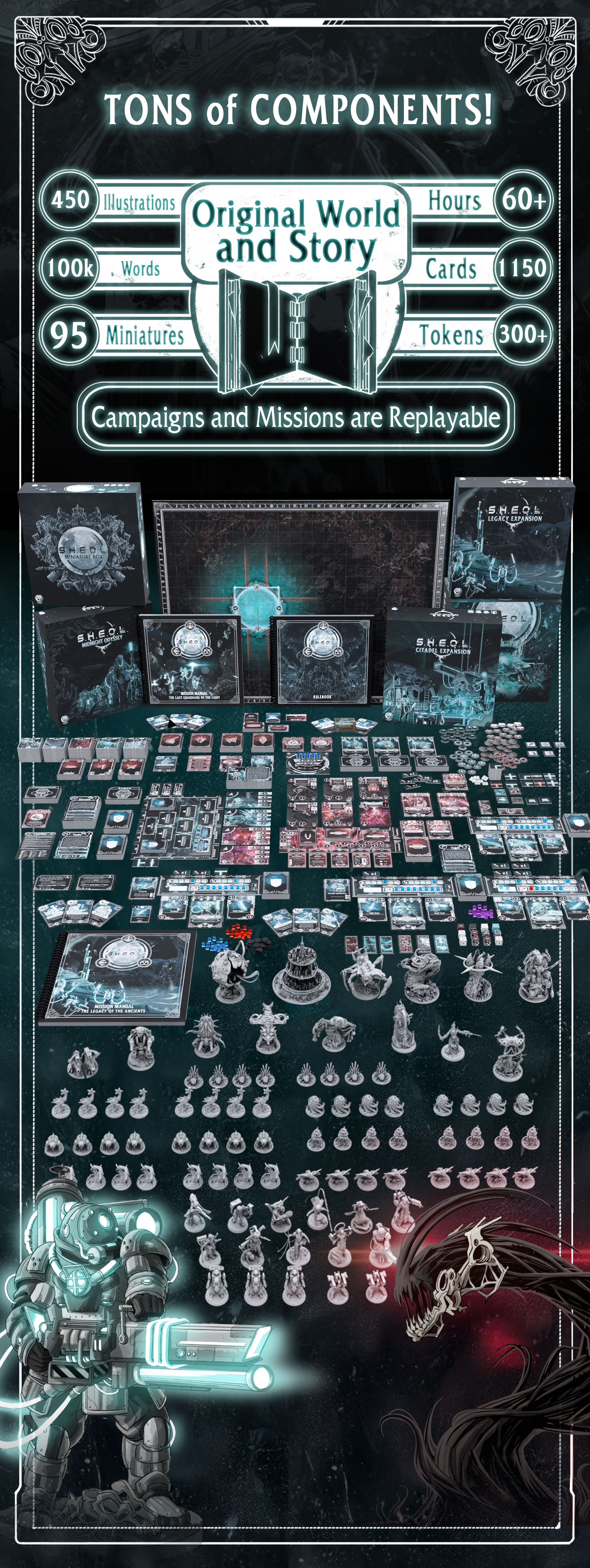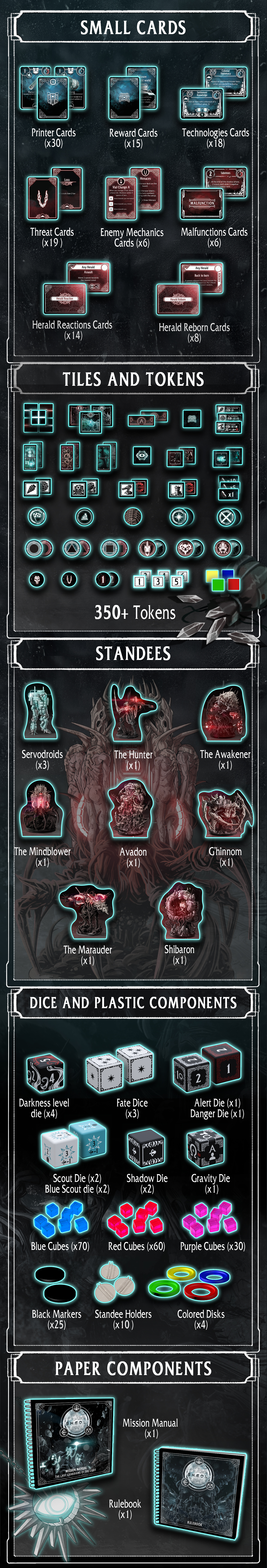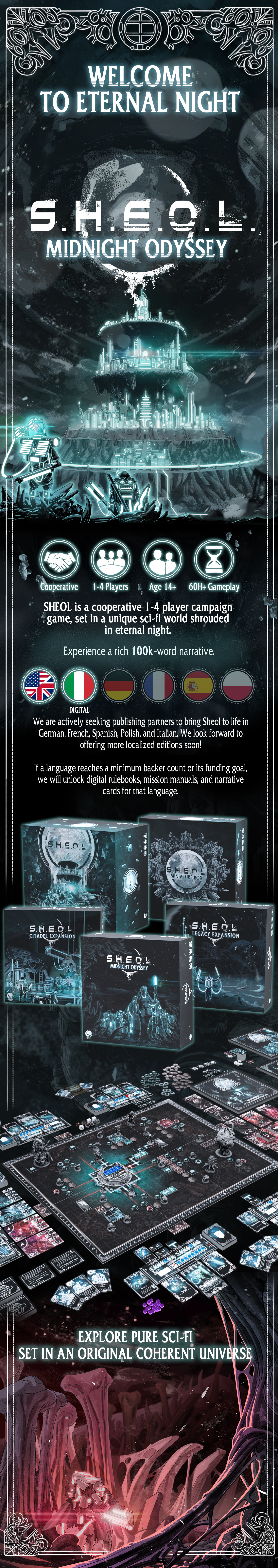 Descripción: Nueva edición del aclamado juego de ciencia ficción Sheol. Sheol es un juego de campaña para 1-4 jugadores, en solitario o cooperativo, ambientado en un mundo de ciencia ficción único envuelto en una noche eterna.