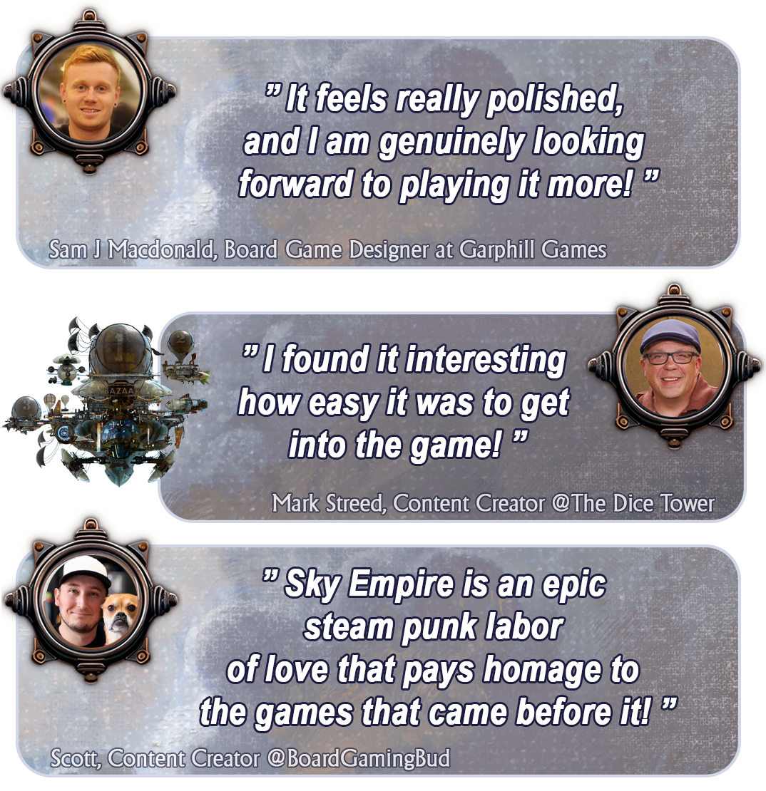 €120.00 - Aetherborne: Sky Empire – Upgraded core game with everything you need to play! Hundreds of hours of gameplay, plus all unlocked stretch goals included.