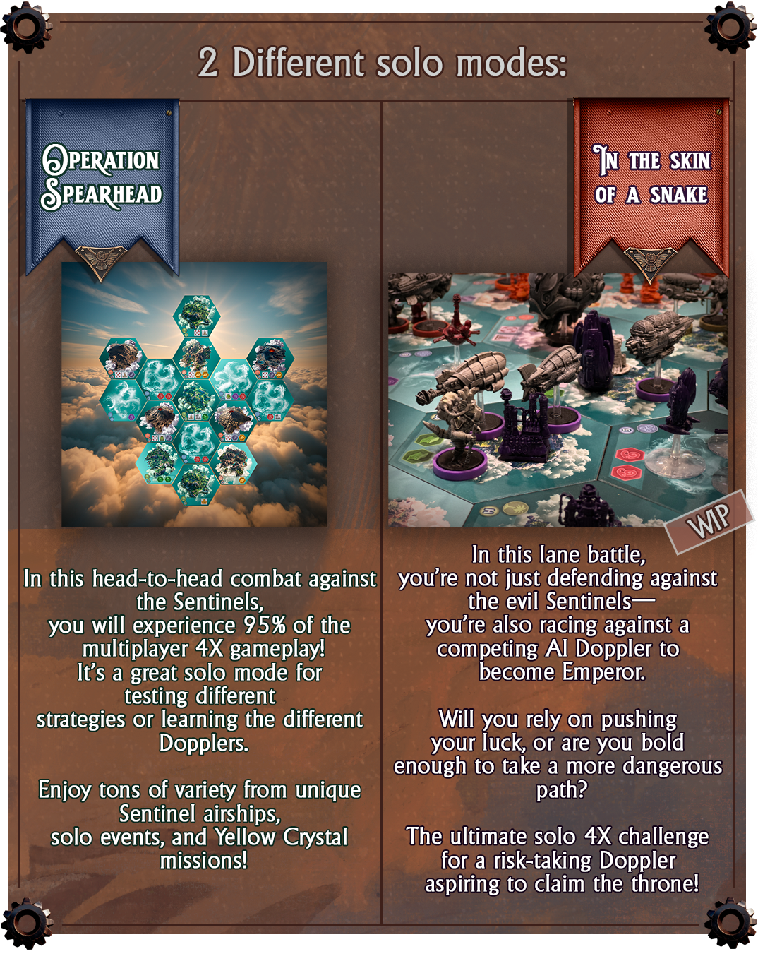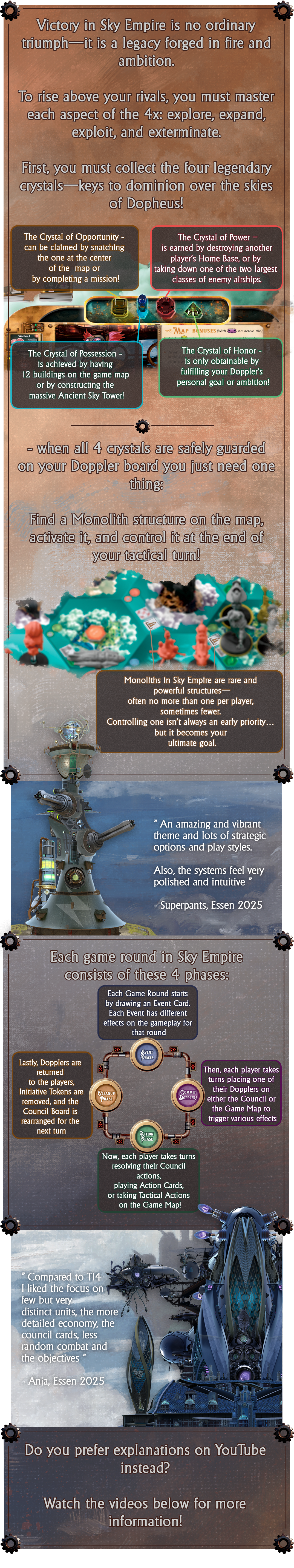 Descripción: Sky Empire es un juego 4X verdaderamente único para 1 a 4 jugadores, ambientado en un universo steampunk ricamente detallado. Cada jugador asume el papel de un Doppler, un ser único con una mente y dos cuerpos, en una búsqueda para convertirse en Emperador del planeta Dofeo.
