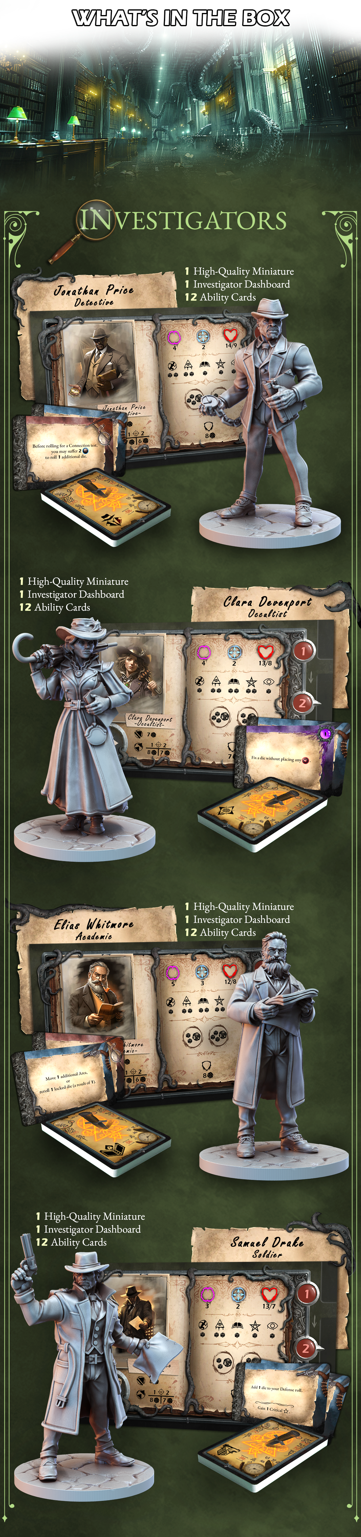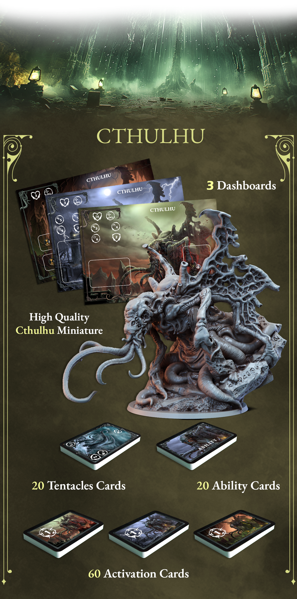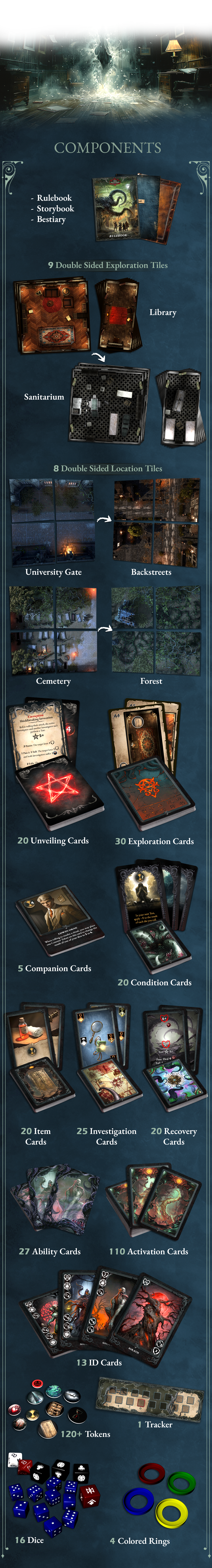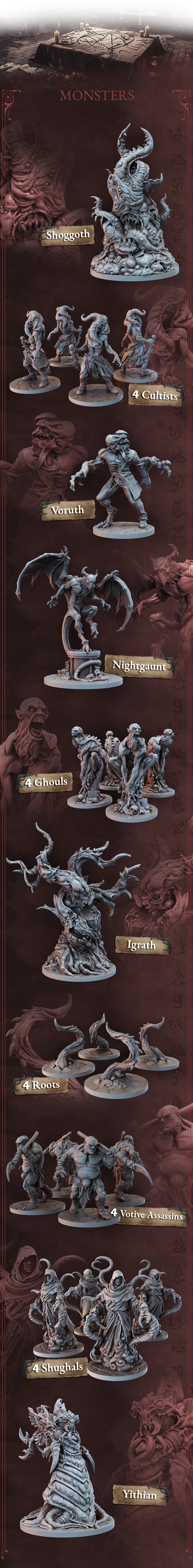 Descripción: Juego de mesa narrativo de horror lovecraftiano donde cada monstruo tiene su comportamiento y reglas.
