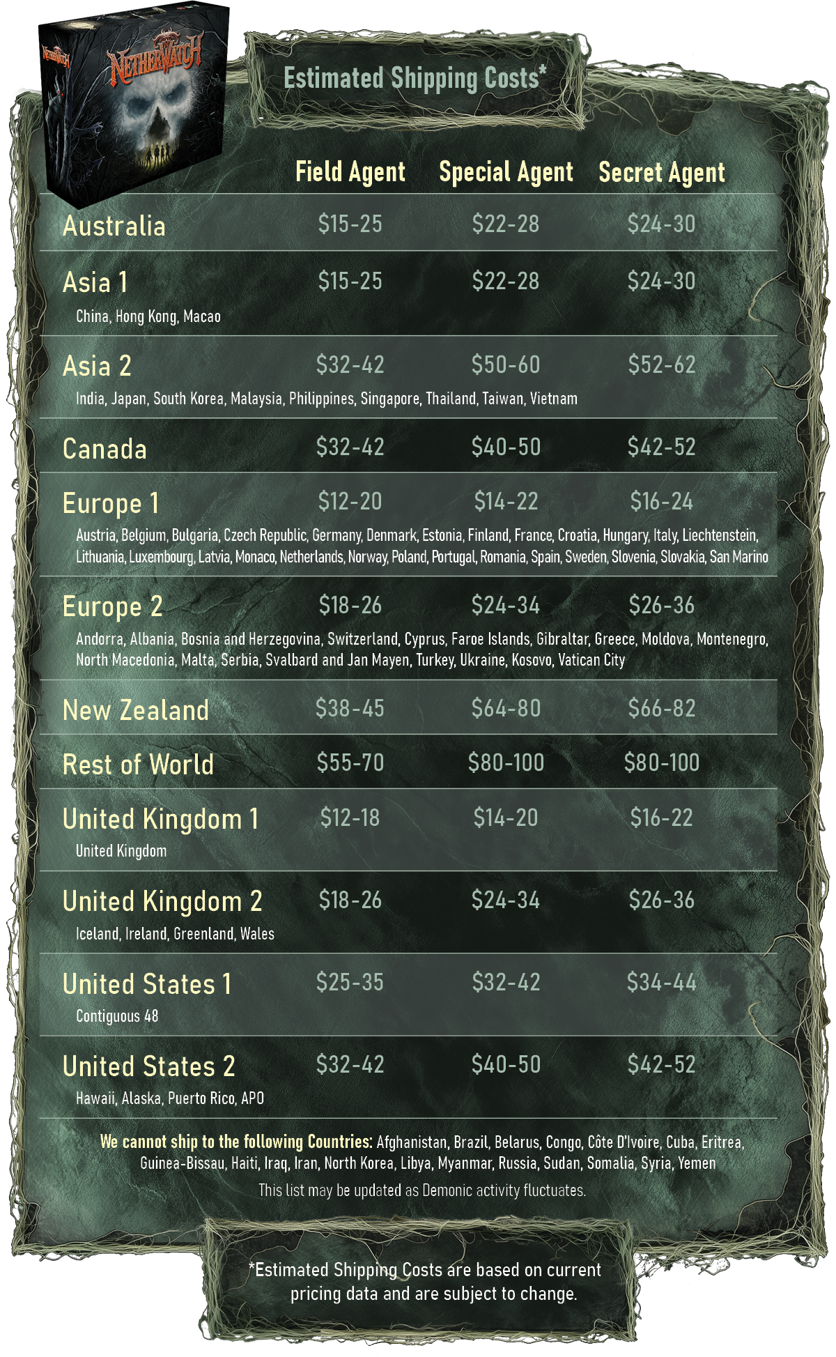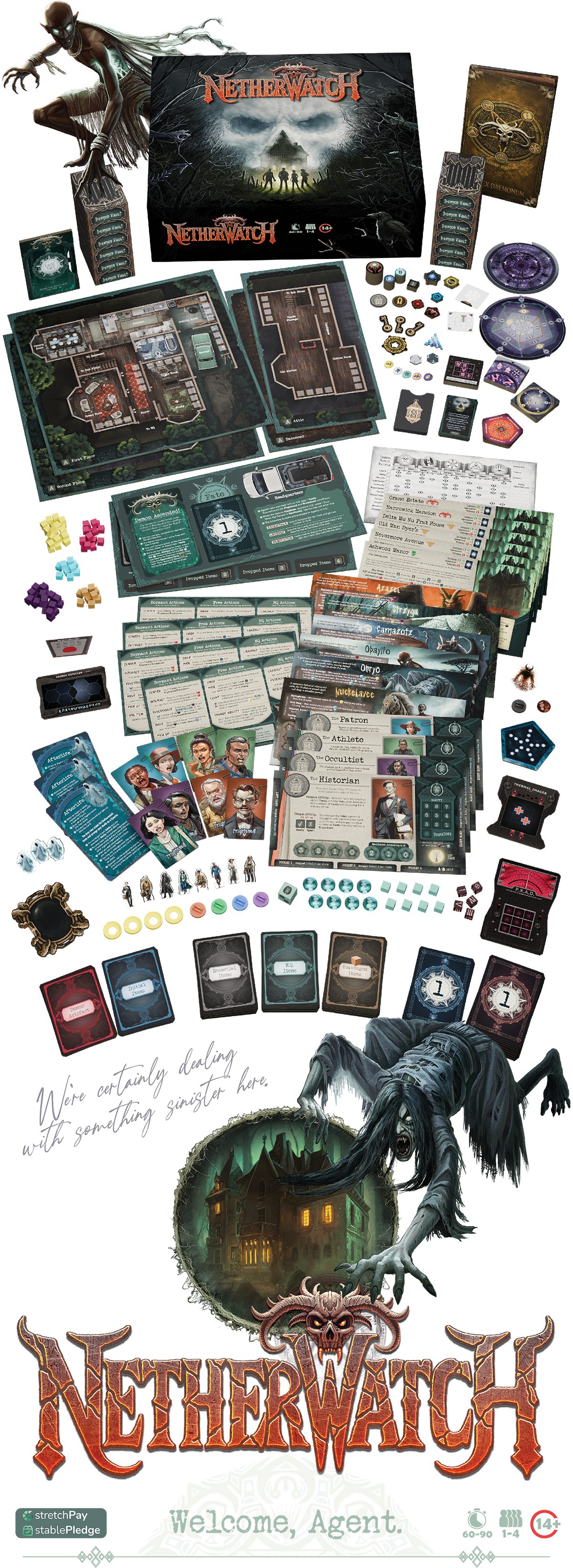 Descripción: Netherwatch es un juego cooperativo de deducción y terror en el que los jugadores asumen el rol de agentes de élite que investigan disturbios sobrenaturales, descubren pistas crípticas y se enfrentan a un Demonio aterrador.