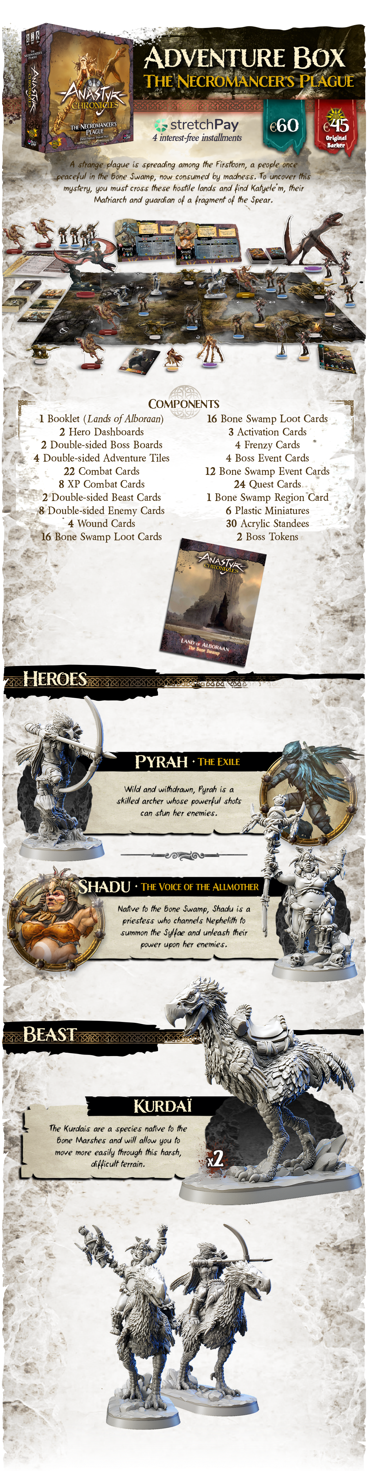 Descripción: Anastyr Chronicles es un juego de mesa cooperativo para 1 a 4 jugadores que combina la acción trepidante de los clásicos juegos de lucha con una épica aventura de fantasía oscura.