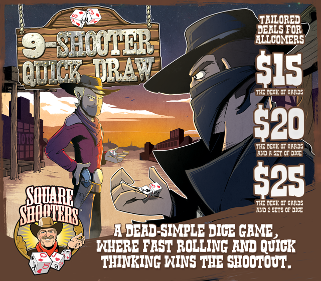 Enlace: https://www.kickstarter.com/projects/gamesalute/9-shooter-quick-draw-a-square-shooters-dice-game/description