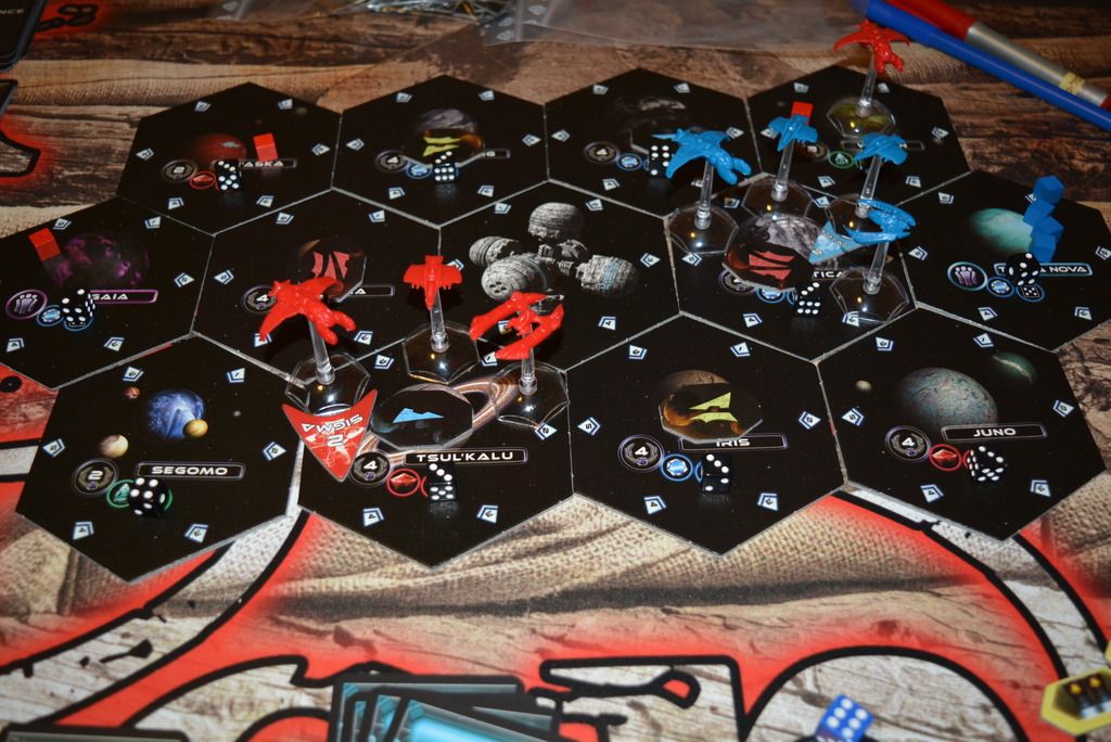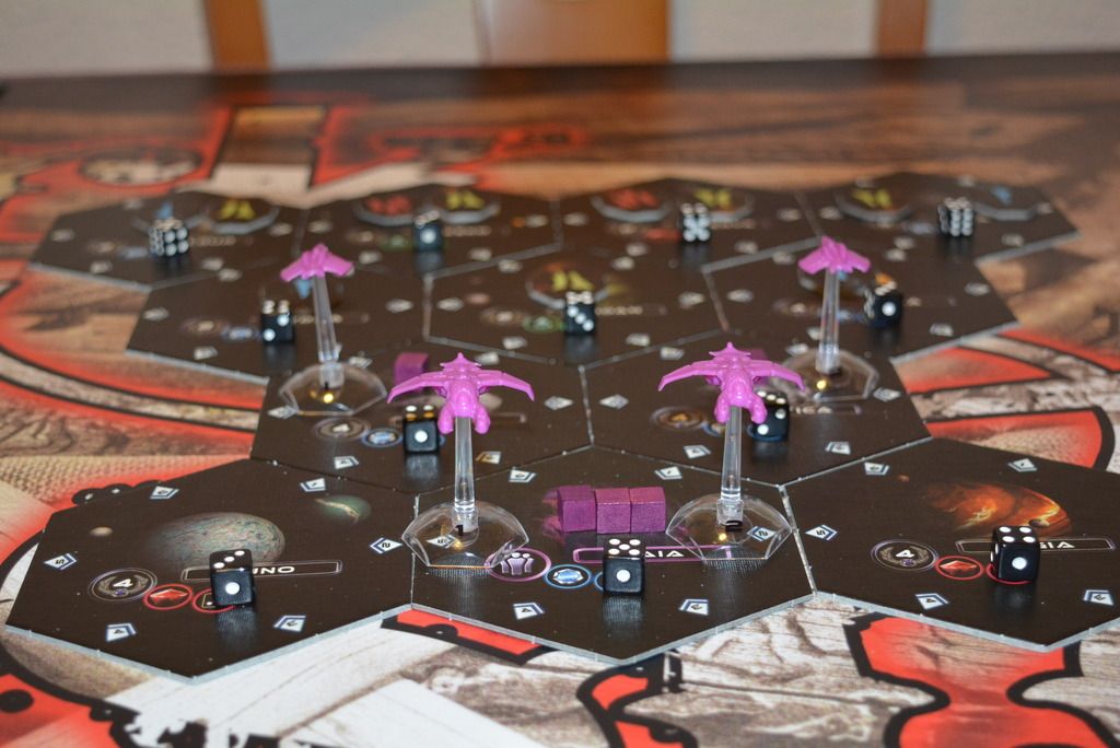 Después de un incidente con unas pocas cartas perdidas por el camino, ya he conseguido poder jugar a la expansión de Exodus: Edge of Extinction.Es agradable tener más navecitas y tener asimetría en las  facciones, por no hablar del modo foreveralone.
