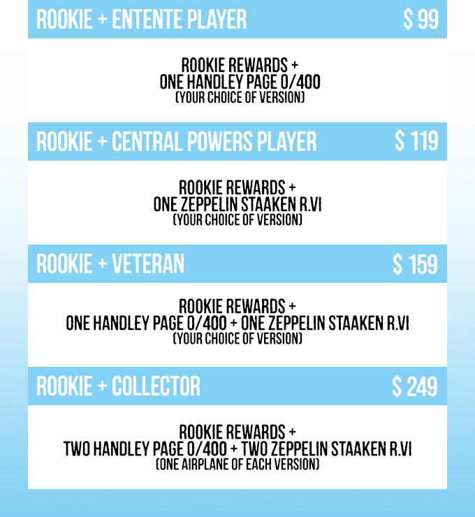 Recomendación de pledge level: si ya tienes algún básico del juego y aunque sale carillo... el Veteran de 110$, un modelo de cada avión