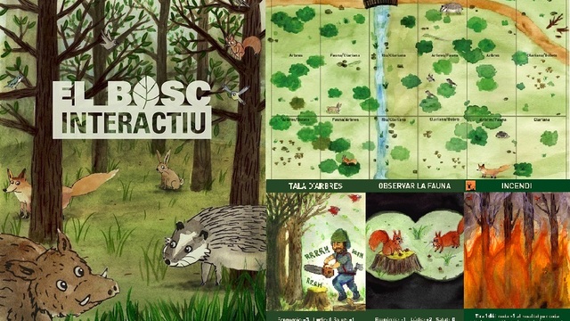 C) Poster del Bosc Interactiu con algunas cartas, la portada del juego, similar a la siguiente imagen.