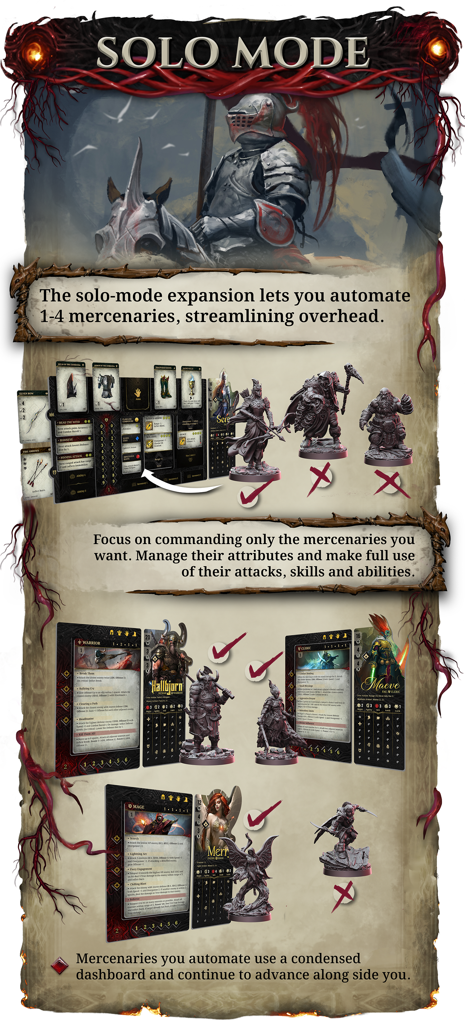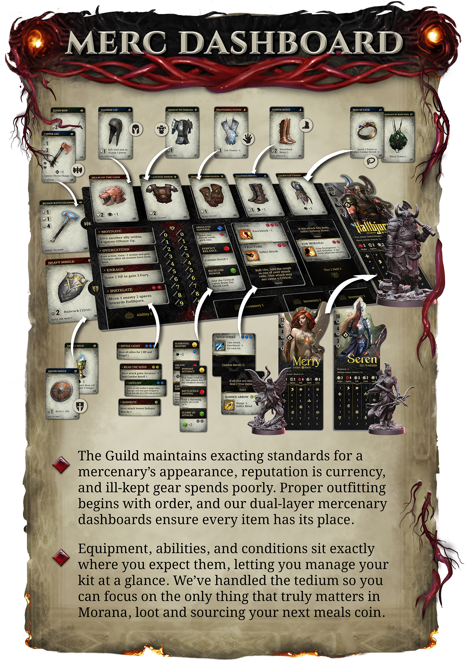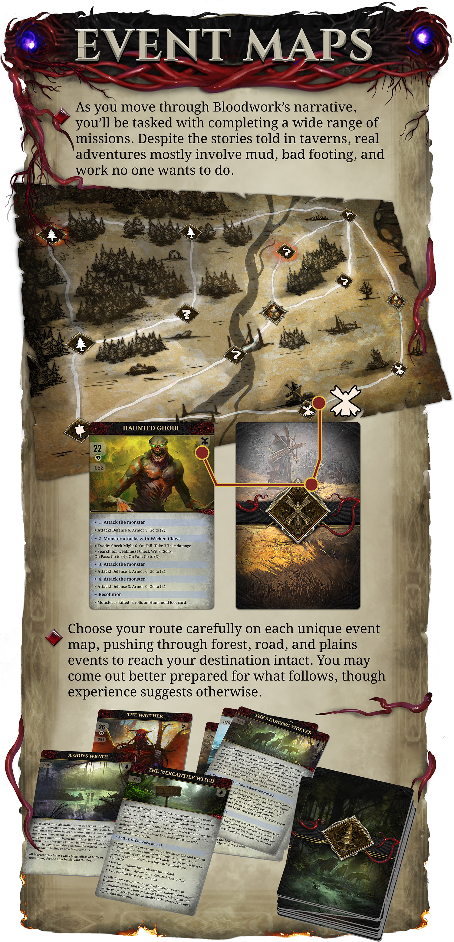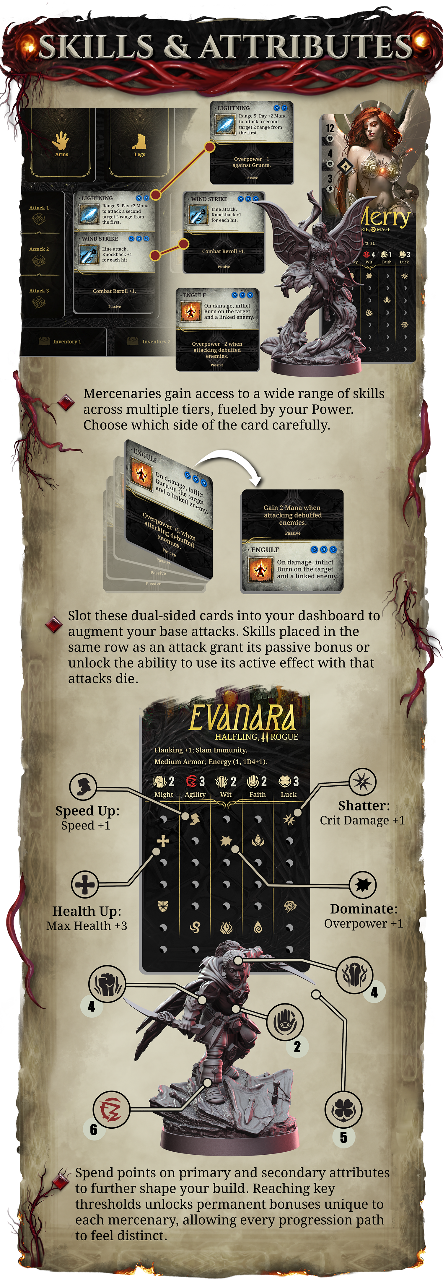 Bloodwork es un juego de mesa cooperativo de fantasía oscura para 1 a 4 jugadores, ambientado en un mundo destrozado por la muerte de su Diosa y la corrupción cósmica desatada a su paso. Dirige un grupo de mercenarios del gremio a través de una campaña ramificada de dos facciones, eligiendo ponerte del lado de los Caballeros Xalgaren o las Tribus Orcas a medida que tus decisiones remodelan las misiones que te esperan. Sobrevive a viajes peligrosos llenos de emboscadas, reliquias, peligros y oportunidades fugaces. Enfréntate a tensas batallas basadas en cuadrículas donde el posicionamiento, las habilidades asimétricas y las opciones de riesgo-recompensa definen cada pelea.
