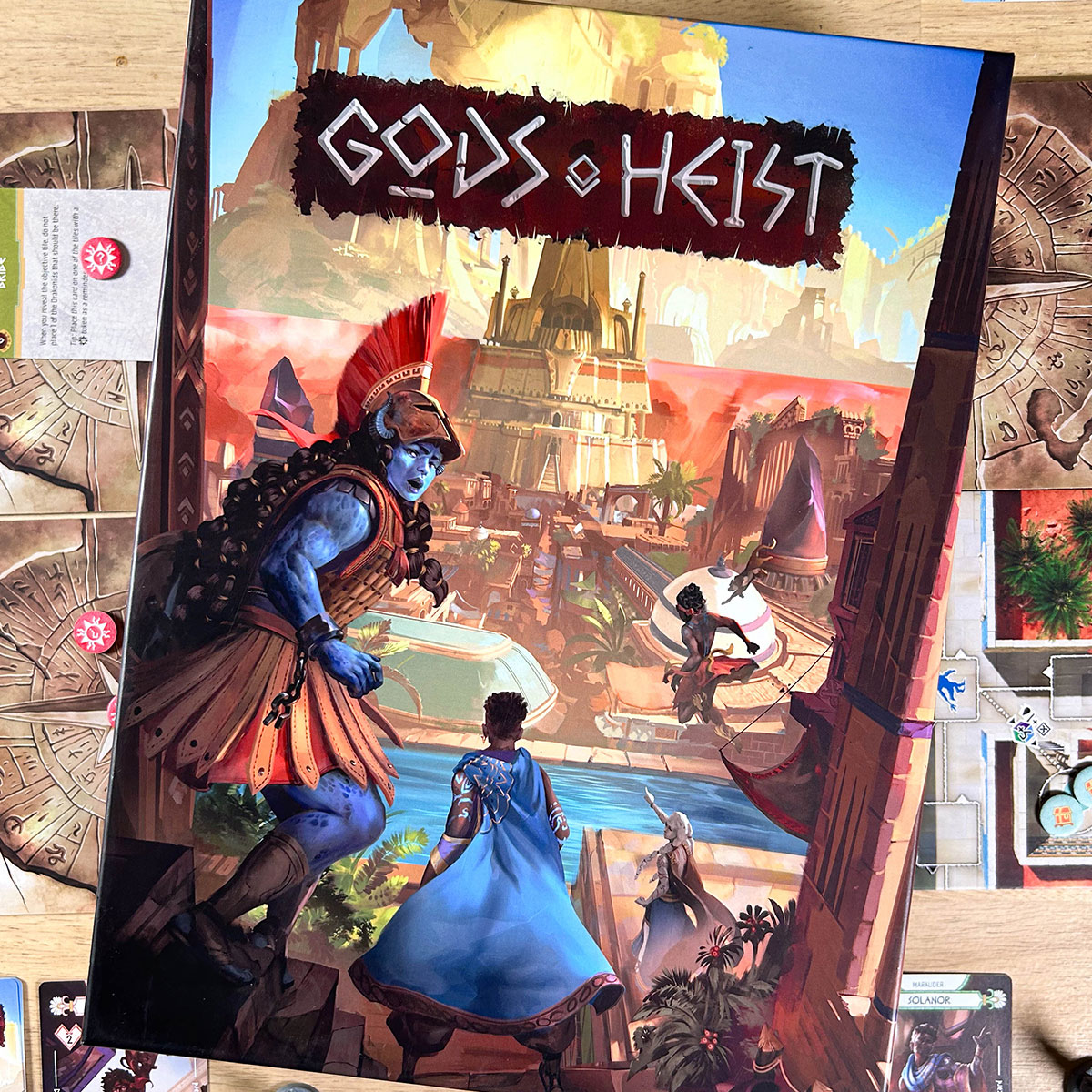 De la mano de Triton Noir, famosos por sus grandes éxitos como V-Sabotage (V-Comandos) y la adaptación de Assassins Creed a juego de mesa, acaban de anunciar su nuevo proyecto Gods Heist.