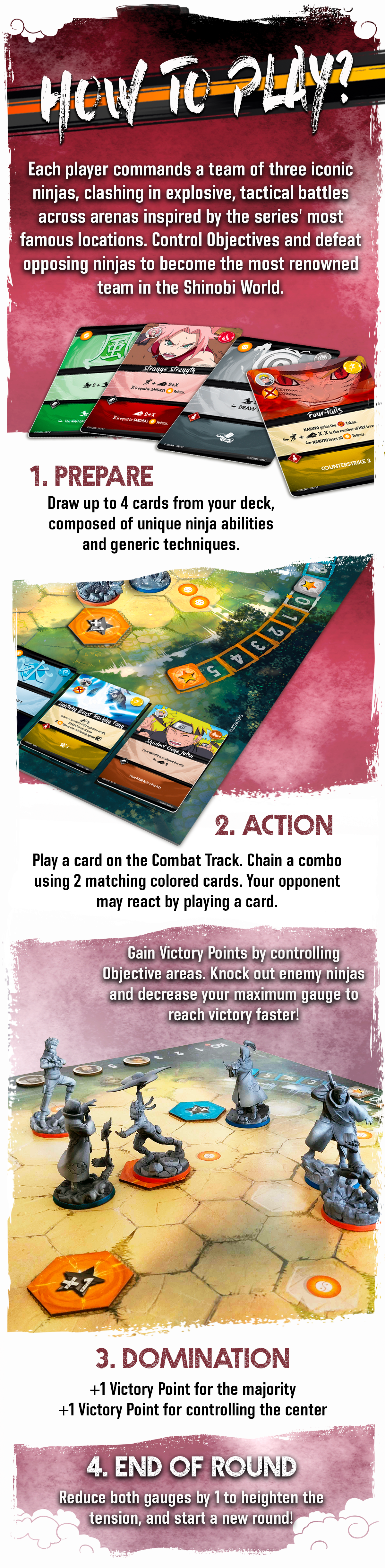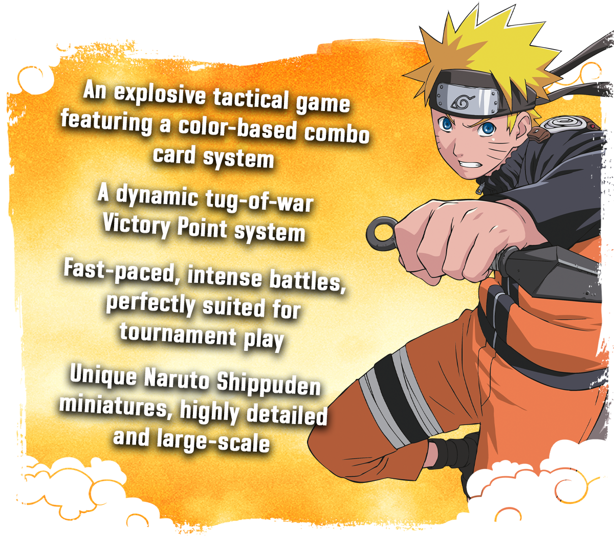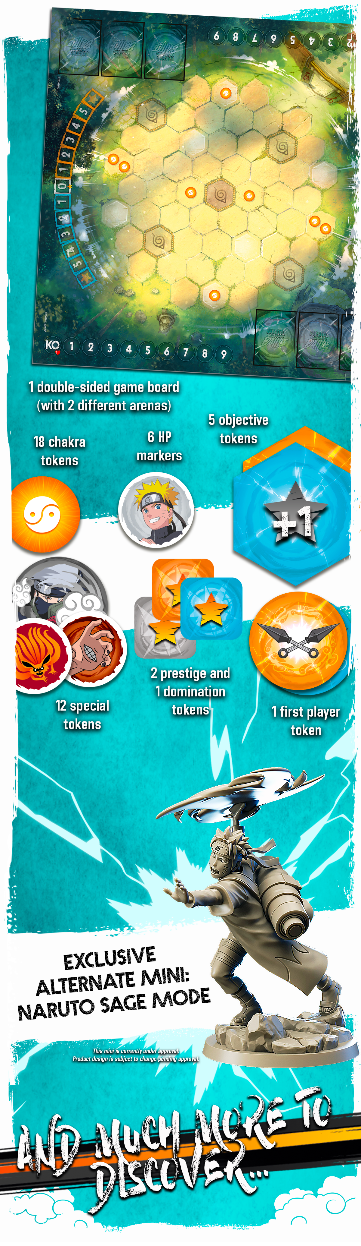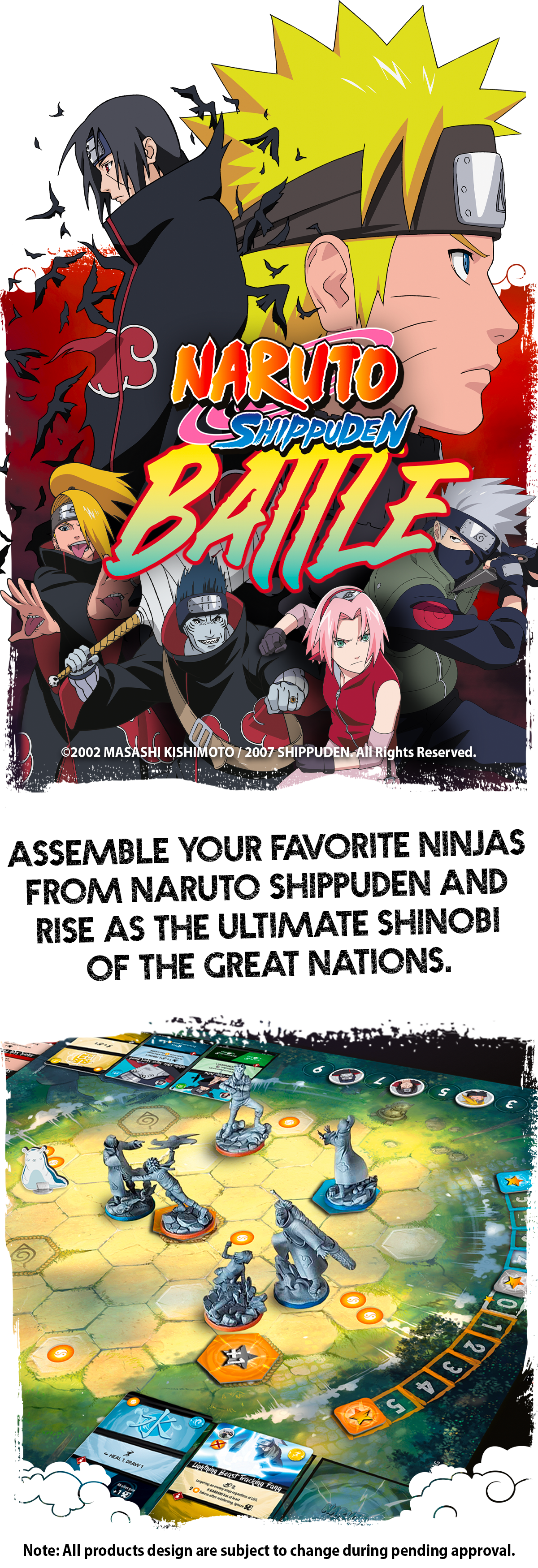 Descripción: El primer juego de mesa oficial de arena con miniaturas basado en el exitoso anime Naruto Shippuden, adaptado del manga de Masashi Kishimoto. NARUTO SHIPPUDEN BATTLE es un juego de mesa de arena táctico para 2 o 4 jugadores, desarrollado por This Is A Game en asociación con Don't Panic Games, que presenta grandes miniaturas y equipos de 3 ninjas que se enfrentan en combates trepidantes basados ��en cartas, desatando poderosos combos de jutsu en batallas de 30 minutos.