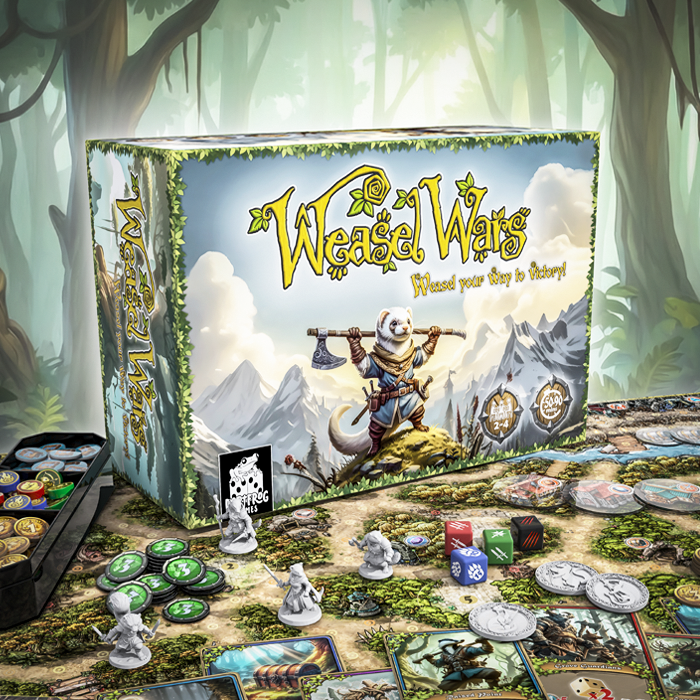 Pre-campaña: https://gamefound.com/en/projects/dartfrog-games/weasel-wars#/