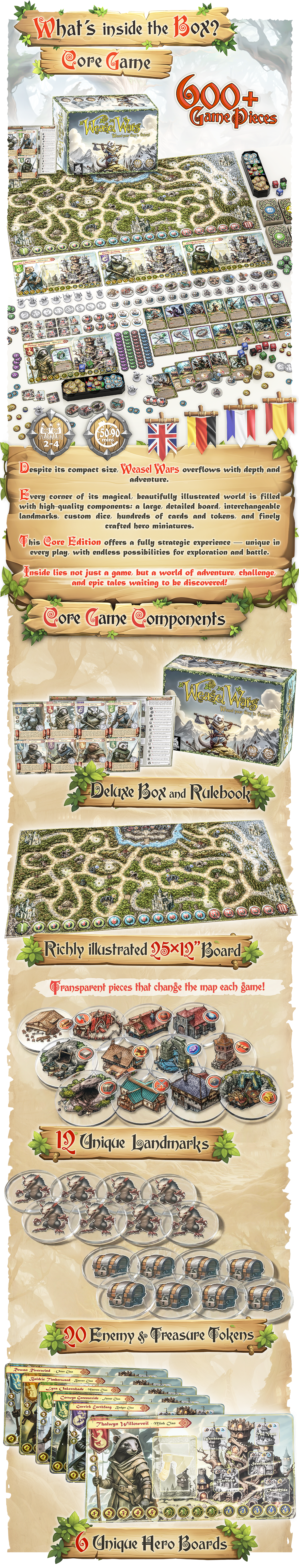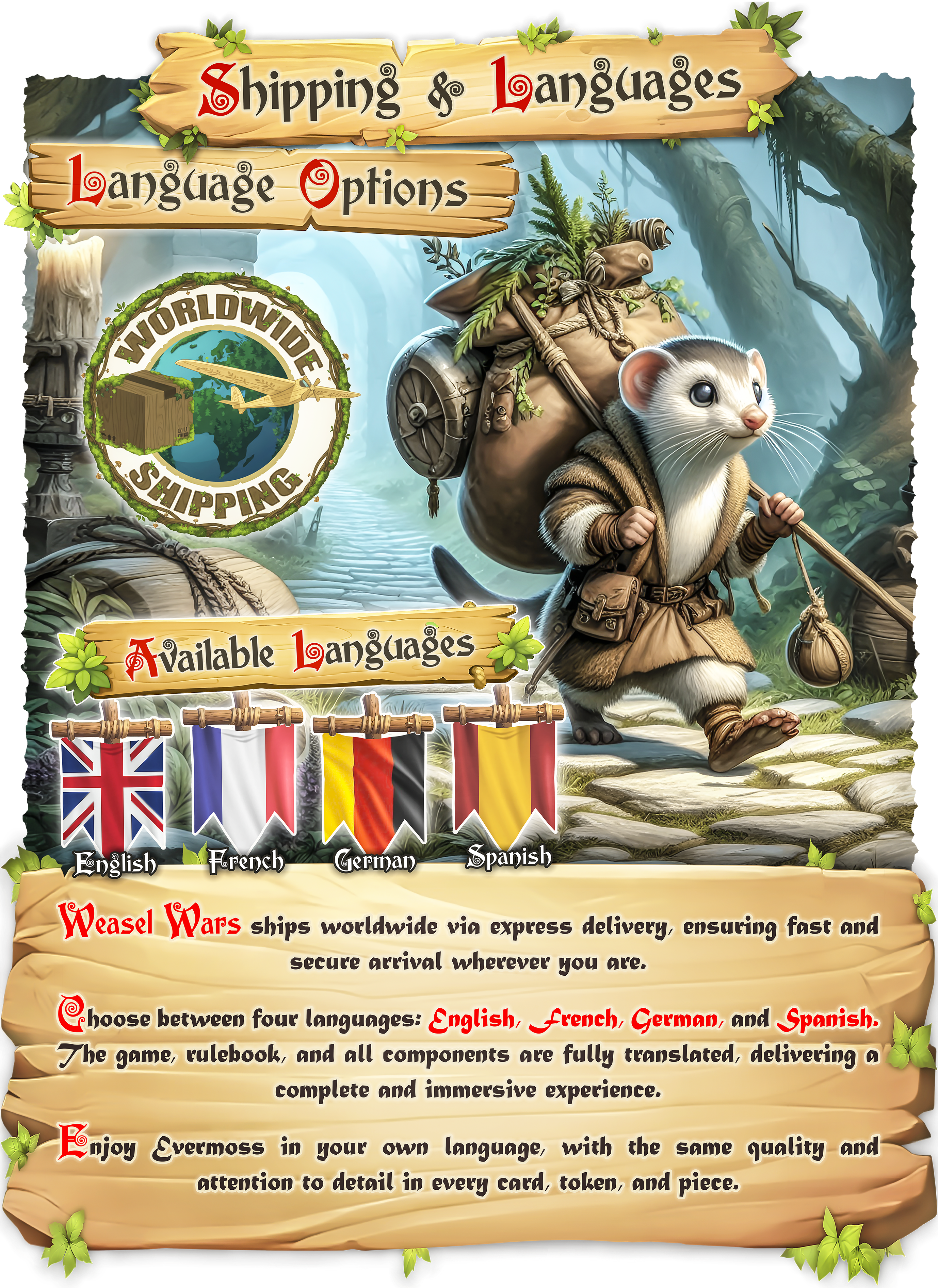 Dirige a despiadados héroes comadrejas en un bosque viviente que contraataca. Un juego de mesa de aventuras tácticas donde cada decisión moldea tu camino a través de Evermoss: explora, lucha y sobrevive en un mundo que reacciona a tus acciones.