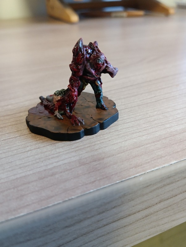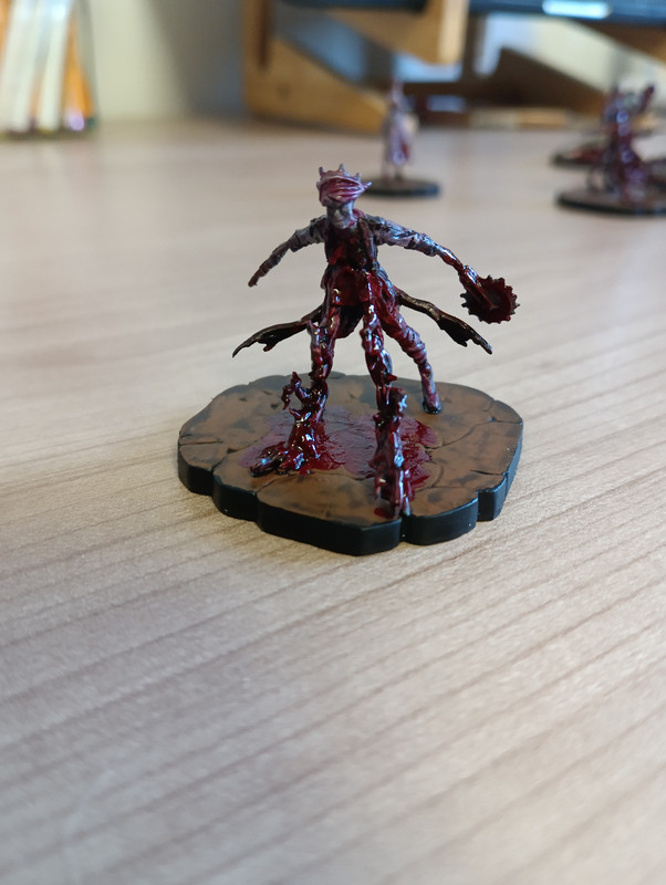 Y empezamos con el Descent 3ed. Están pintadas con playmarkers, baño con Xpress diluidas en su propio médium y alguna luz. Es este caso, las luces han sido a pincel seco morado pastel. Como el rojo se quedó un poco meh, le volví a dar con las express diluidas.