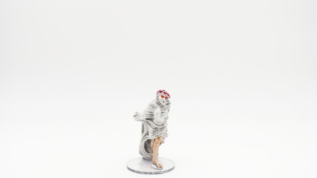 Que conste que a mí la miniatura de la vampira (porque es la vampira, ¿verdad?) me gustaba, pero no sé si es por la forma en que está pintada o por el ángulo con que se ha tomado la foto, pero viéndola así, me la imagino apareciendo de repente corriendo por los pasillos gritando "¡Uuuuuhhhh!", los héroes apartándose para dejarla pasar, y la vampira continuando avanzando porque por culpa del sudario no vé por donde va, hasta acabar estampándose contra una pared.
