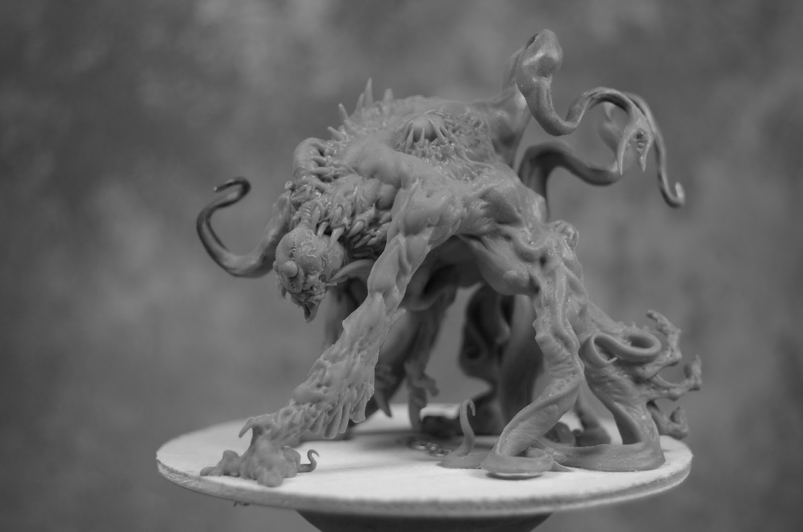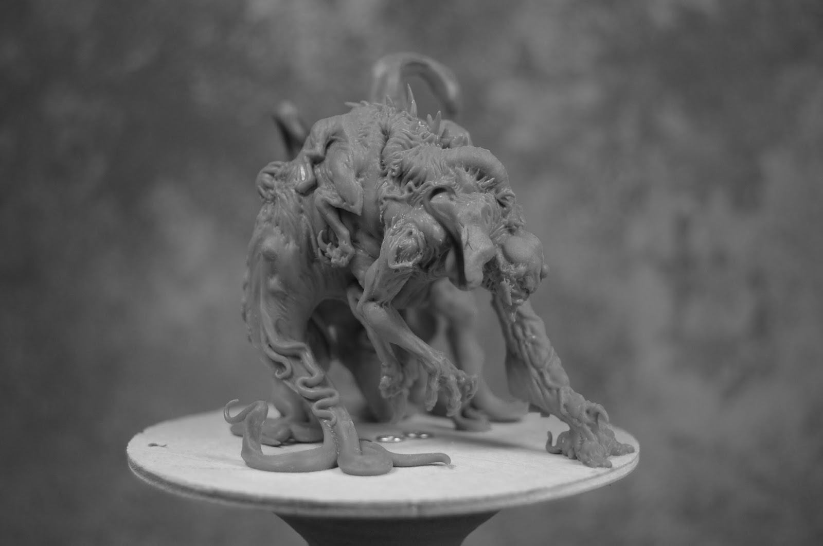 CitarBob has a tiny bit of a story behind his creation. Mr. Raphael Guiton know s that I love John Carpenters "The Thing" so when the artists were commissioned to do some of the games concepts he had requested them to render this with me specifically in mind. This was also a figure I did without sending progress pictures off to the crew simply because, well, what would I show? Any picture I sent would be confusing since it had nothing like it to compare it to. Especially since how I had to sculpt it was to build from the most inner layer of detail outward, there was no real "bulk-up" stage to show off the overall mass and pose of the figure, just progressive layers of limbs and tentacles added on growing outward to the left and right.