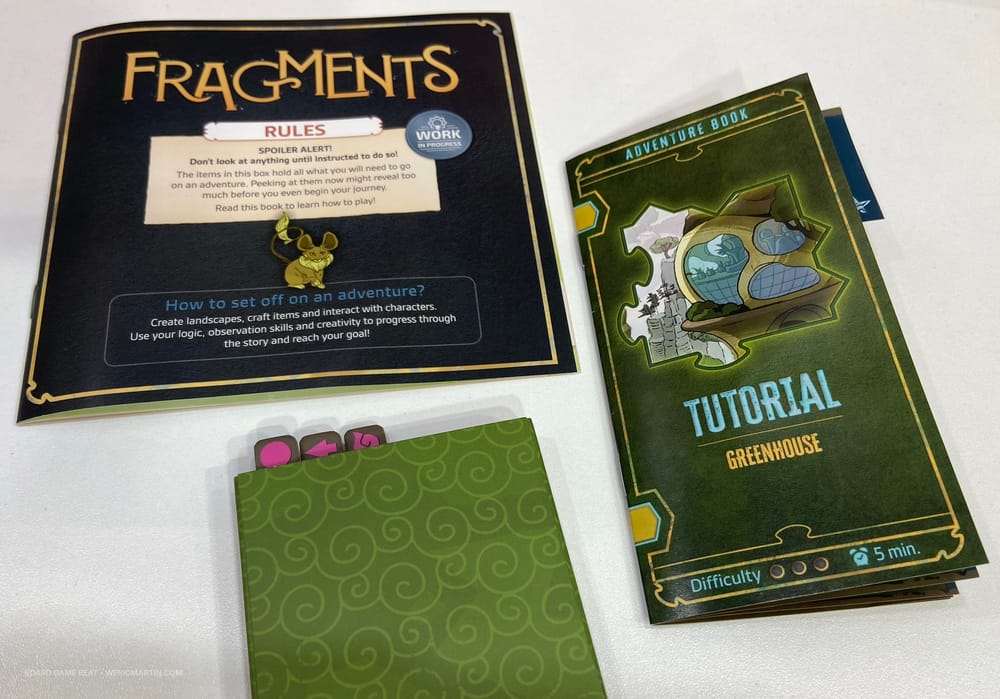 Fragments es similar a una aventura de estilo escape room, en la que se apunta y se hace clic, excepto que, en lugar de hacer clic, se «desbloquean» piezas de rompecabezas de fundas de cartón a medida que se avanza en la historia. El tutorial incluye material de referencia y luego te indica que «abras» una pieza indicada.