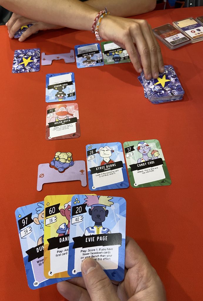 El líder del combate juega una carta y tú debes seguir el mismo palo, siendo el amarillo el comodín. Cada carta tiene un valor de estrella, un valor de fuerza para el combate actual, un valor de iniciativa para ver quién lidera el siguiente combate y un efecto de texto que se produce en una situación específica. Tu objetivo es ganar combates para conseguir puntos con tus personajes, pero también puedes conseguir puntos controlando la pelota y realizando diversos efectos, por lo que «Oddball» es un juego de cartas con poderes especiales, similar al draft y a los juegos de bazas.