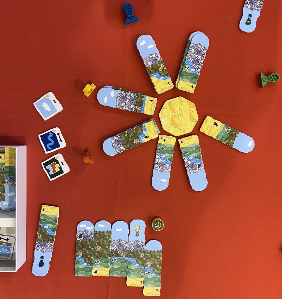 Se anuncia para finales de 2026 este juego. Un juego con draft de losetas en el que se va creando un panorama personalizado, colocando una pieza tras otra, con bordes estriados que permiten combinar las piezas de formas específicas.