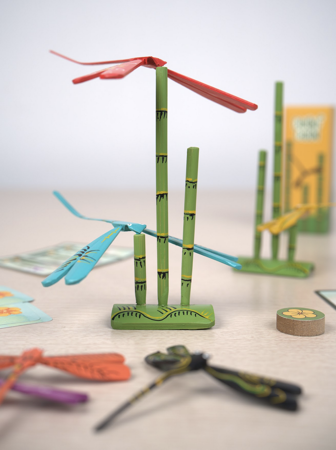 Chuồn Chuồn (que se pronuncia «choon choon» y significa «libélula») se inspira en los juguetes tradicionales vietnamitas de libélulas en equilibrio, transformándolos de objetos decorativos en un divertido juego de estrategia con luces. Apto para todas las edades, ofrece infinitas posibilidades de juego, giros mágicos y un encantador reflejo de las libélulas en la naturaleza.
