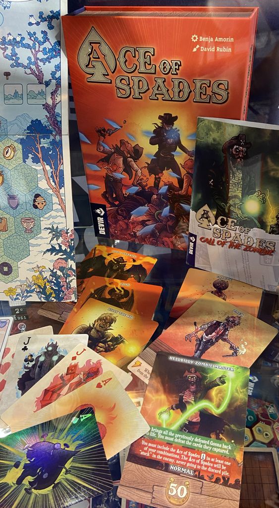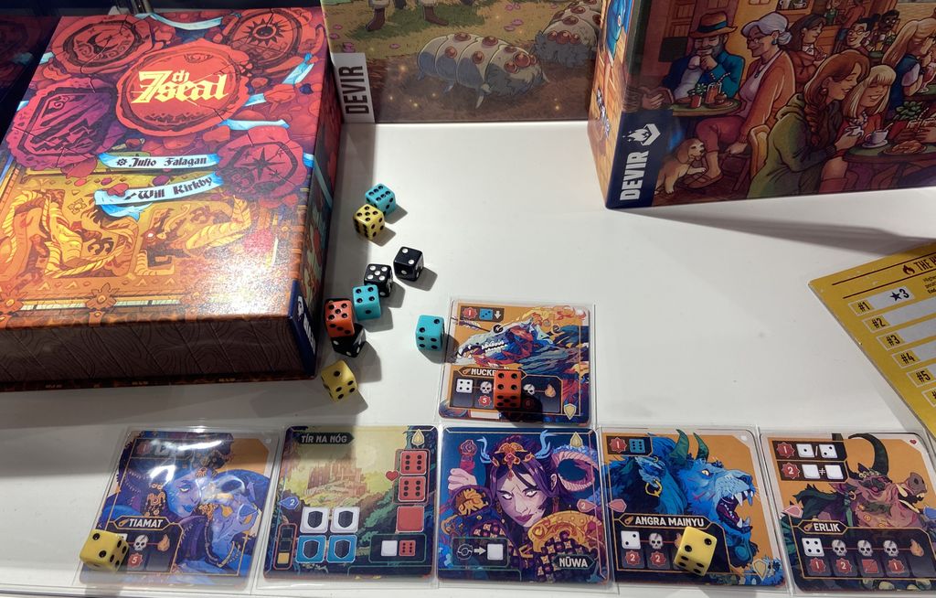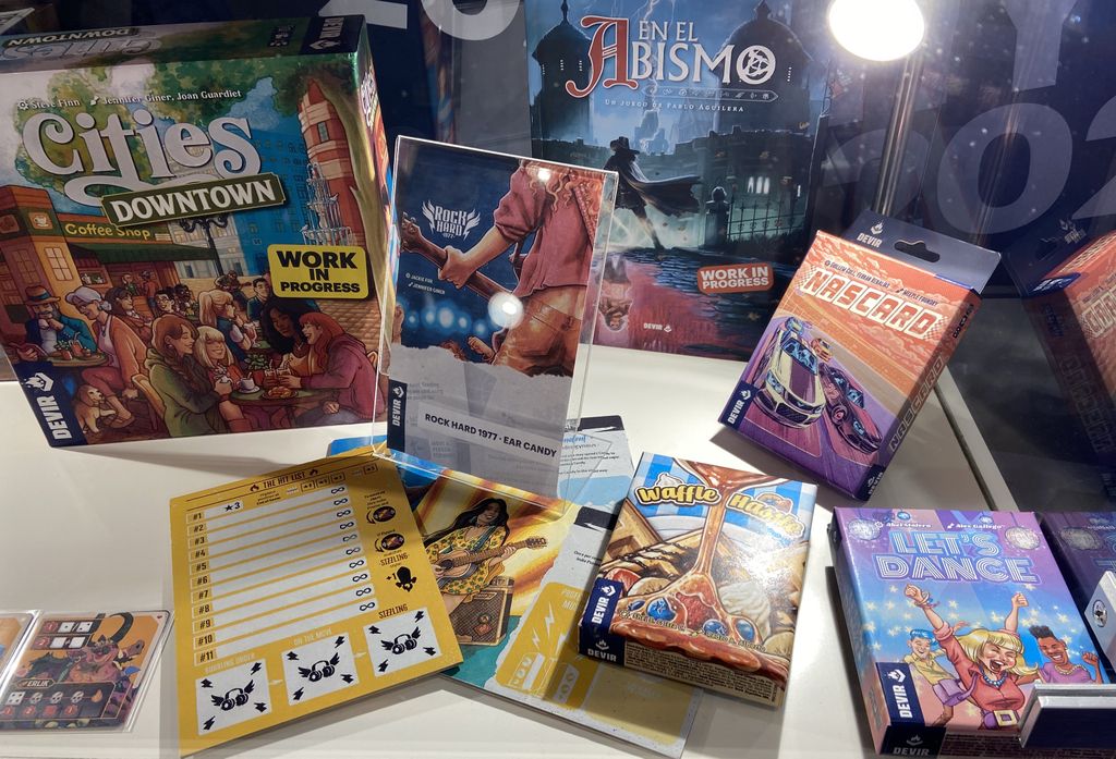 Los otros títulos que aparecen arriba son Cities: Downtown, un diseño de Steve Finn más abstracto que el Cities original, pero que sigue encajando con la estética de ese juego; tres nuevos títulos de la línea «pocket» de Devir: Let's Dance, de Abel Molero; Waffle Hassle, de Shei S. e Isra C.; y NASCARD, de Guillem Coll y Ferran Renalias; y En el Abismo, también conocido como In the Abyss, un librojuego solitario de estilo RPG de Pablo Aguilera que será un poco más complejo que In the Ashes, de 2022.