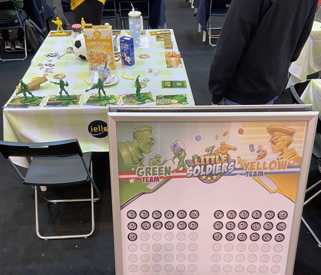 Un juego que mezcla wargame y party, IELLO presentó una versión ampliada del juego en su stand de SPIEL Essen 25, invitando a los posibles jugadores a dejar su huella en el marcador.