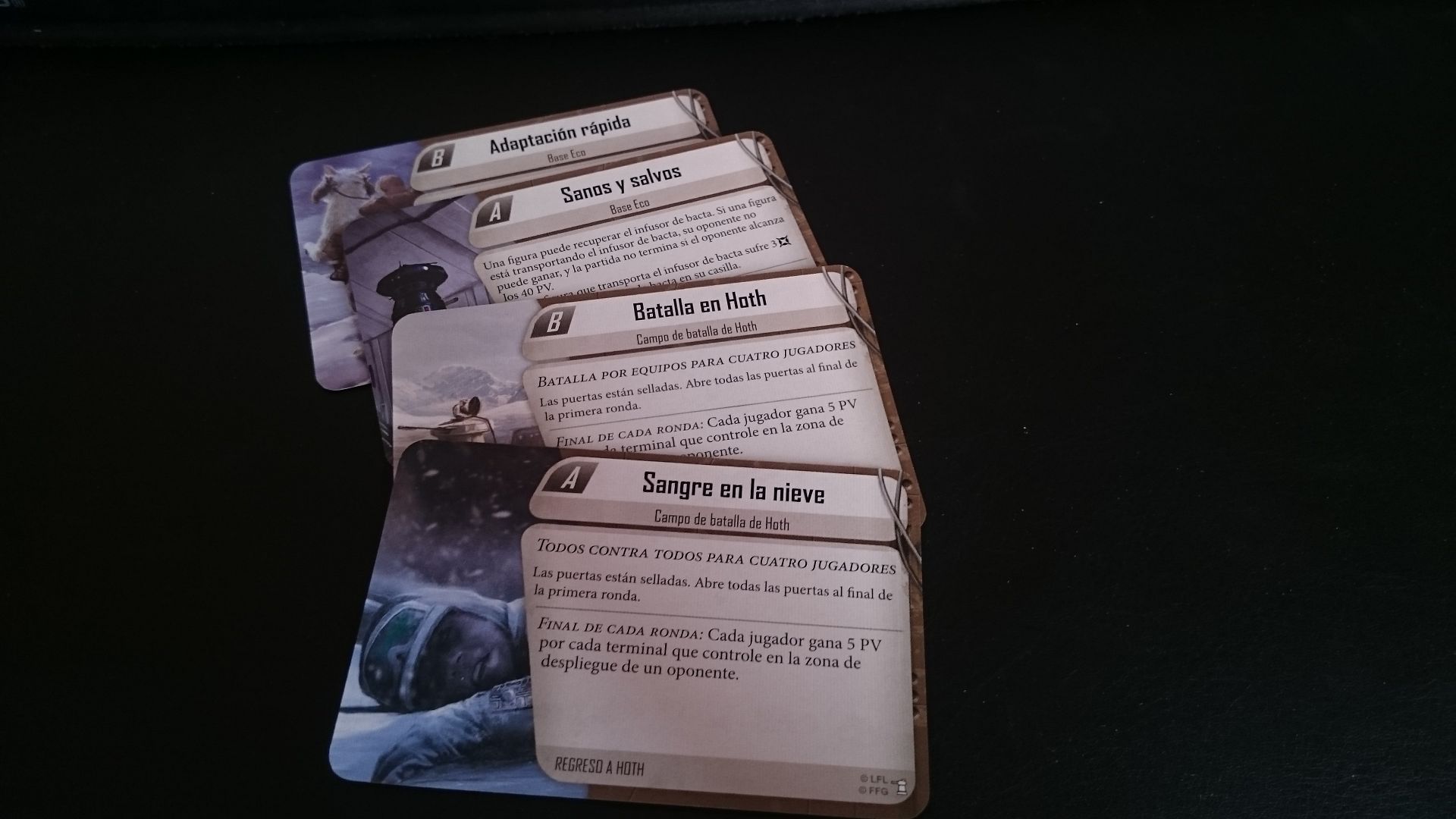 Cartas de escaramuza (2 de ellas es para 4 jugadores)