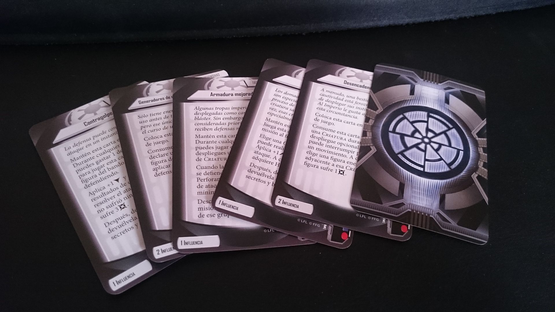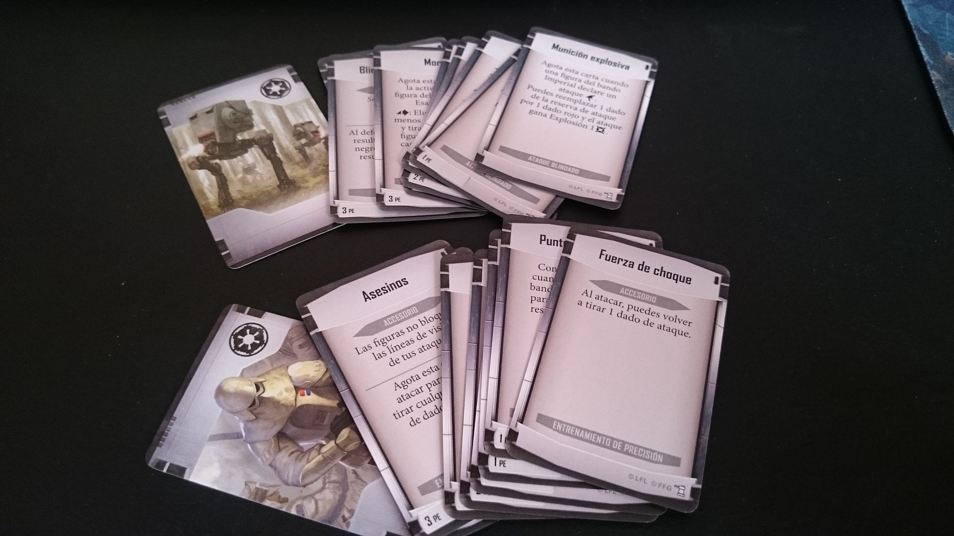 Cartas de despliegue (rebeldes, imperio, escoria y 2 neutrales)